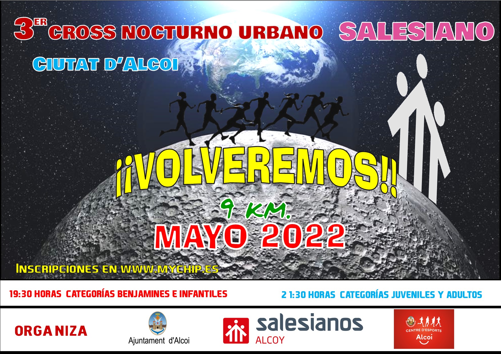 El centre educatiu Salesians ha organitzat per al pròxim 6 de maig la tercera edició del Cross Nocturn Urbà Solidari Ciutat d’Alcoi. Serà en benefici del Projecte de Recolzament Educatiu Don Bosco, dut a terme per la Fundació Iniciativa Solidària Ángel Tomás (FISAT) vinculat al centre, i també per al programa EMOTIUS, del Grup d’Alcohòlics Rehabilitats d’Alcoi, entitat que enguany celebra el seu 50 aniversari.