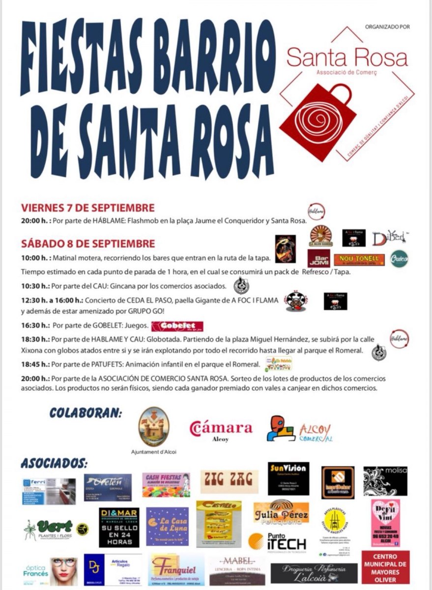 L'associació de comerç 'Santa Rosa' realitzara una sèrie d'activitats que es podran gaudir aquest dissabte, inclús el divendres a la plaça Jaume el Conqueridor i al carrer Santa Rosa a les 20:00 tindrà lloc un 'flashmob', on un grup de gent es posara a ballar.
