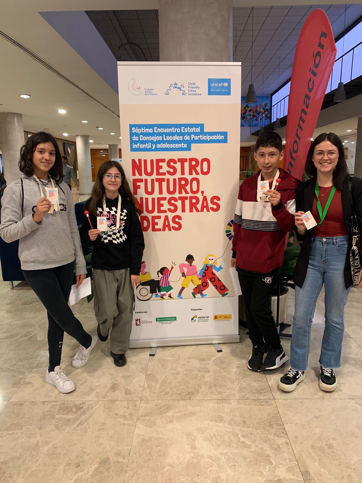UNICEF ha celebrat la seua trobada estatal de consells locals i ho ha fet a Càceres. Des del Consell Local de la Infància i Adolescència d'Alcoi, han acudit 3 representants, Yerai, Martina i Aitana acompanyats d'una de les dinamitzadores.