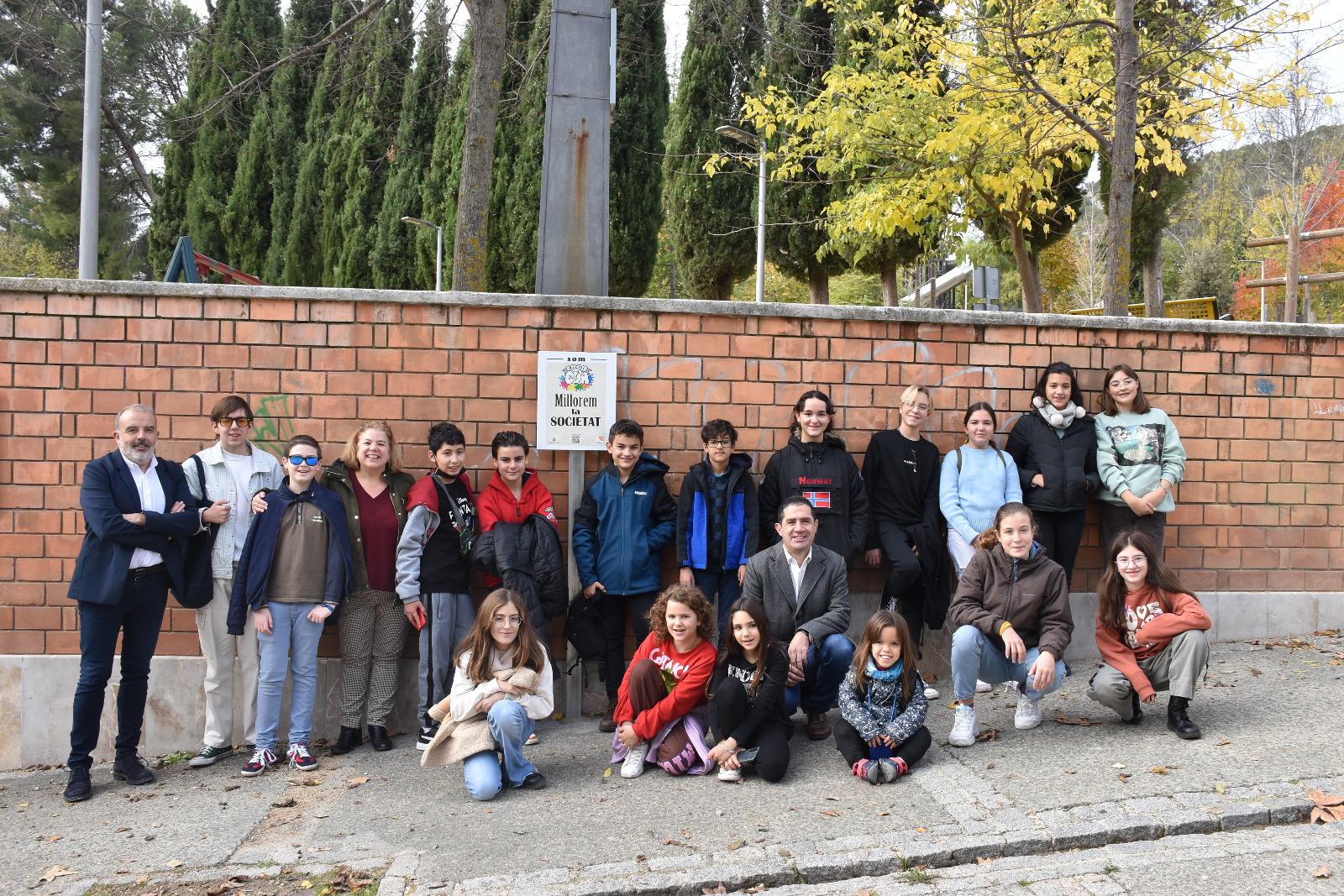 A la col·locació dels cartells han acudit L'alcalde d'Alcoi, Toni Francés, el vicealcalde, Jordi Martínez i la regidora d'Infància i Adolescència, Aranza de Gràcia.