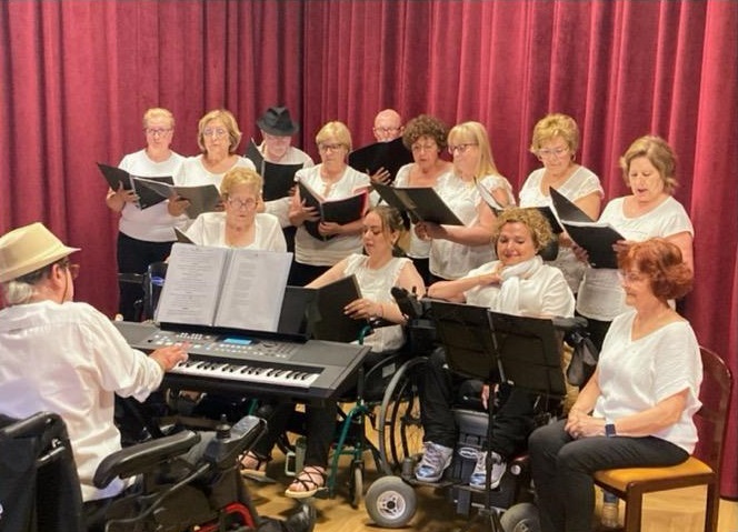 Aquesta és quasi una activitat terapèutica, doncs permet que les persones amb discapacitat se senquen realitzades, entreteses i que connecten amb altres persones amb malalties diverses que els manté sentades a una cadira de rodes. Ara son unes 12-13 persones les participants. Modesto Satorre és el director d’aquest cor, a més de representant de l’associació davant l’ajuntament i membre de la comissió d’accessibilitat, perquè no hi ha que olvidar que aquest segueix sent l’objectiu principal de l’entitat.
