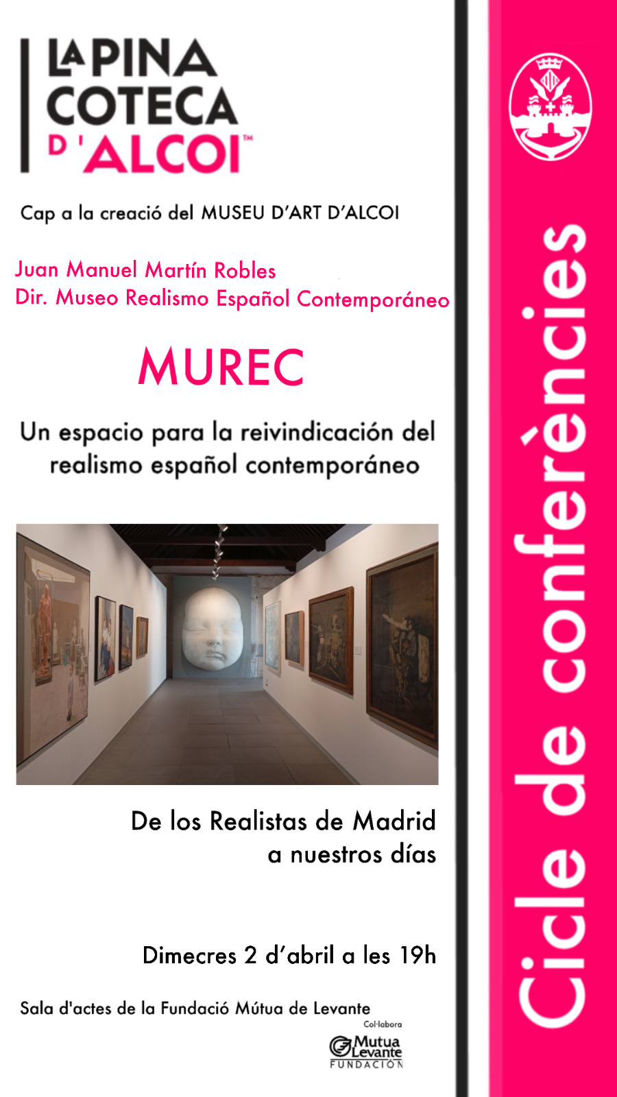 La conferència «Museo del Realismo Español Contemporáneo (MUREC): Un espacio para la reivindicación del realismo español contemporáneo», a càrrec de Juan Manuel Martín Robles, director d’aquesta institució, és el següent encontre del cicle de xarrades previ a la inauguració de «La Pinacoteca» en el mes de novembre amb un monogràfic sobre l’alcoià Antonio Gisbert, primer director del Prado.