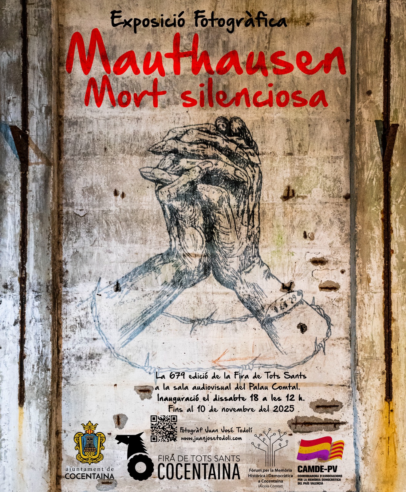 'Mauthausen. Mort silenciosa' és el títol de l'exposició del fotògraf gandienc Juan José Todolí, i que ara podrem visitar a la sala audiovisual del Palau Comtal de Cocentaina. La mostra, segons l'autor, vol "donar a conéixer i reflexionar sobre la trajectòria compartida pels republicans espanyols i els jueus que van ser internats en el camp de concentració de Mauthausen". Amb esta mostra, Todolí vol contribuir "a la construcció de la memòria dels esdeveniments vinculats a la deportació, rescatar de l'oblit i homenatjar les persones que la van patir".