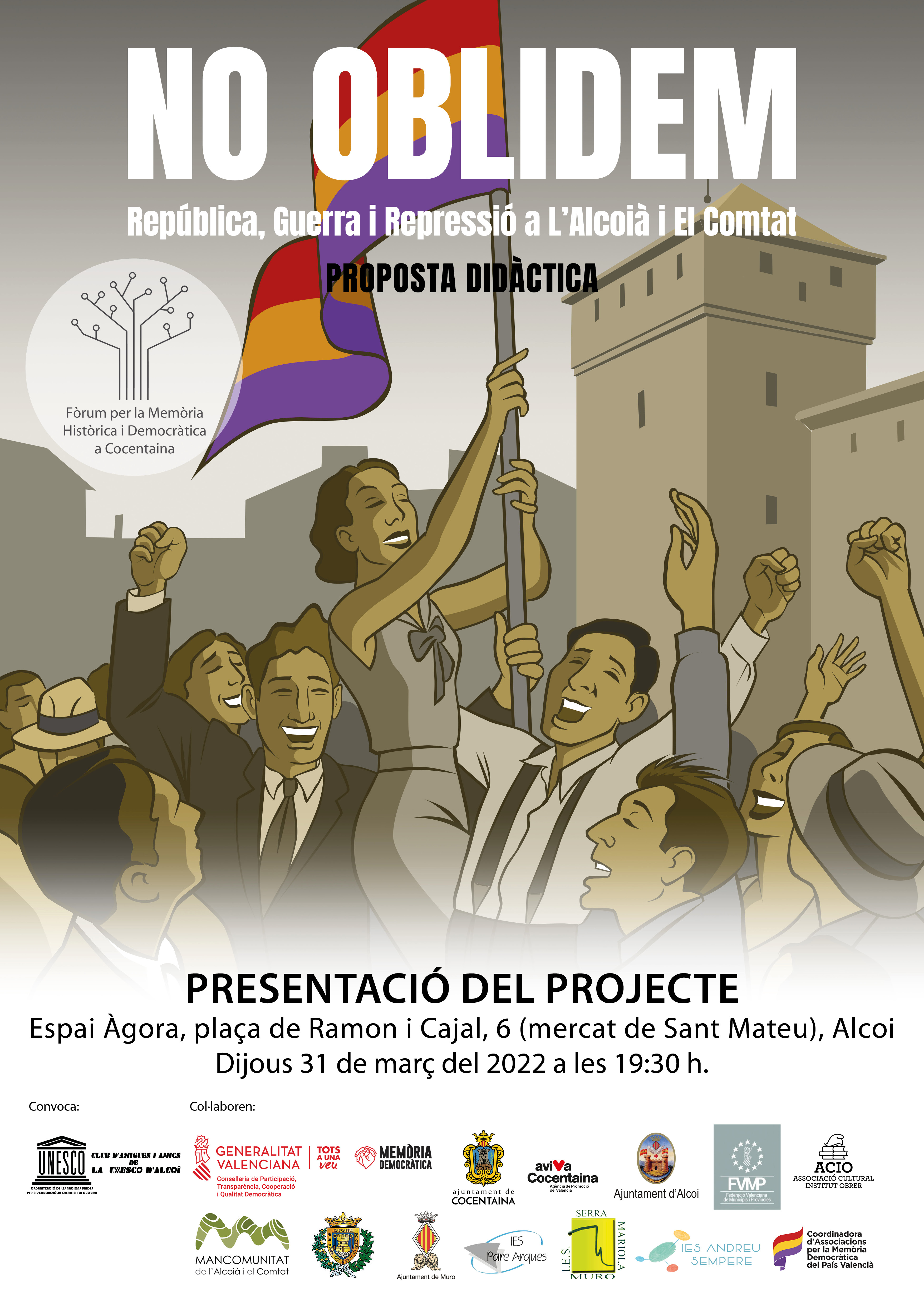 'No Oblidem' es una proposta didàctica que treballa la memòria històrica. L'acte de presentació a Alcoi s'ha organitzat per al pròxim dijous 31 de març a les 19:30h a la Sala Àgora. Estarà presentat per Amalia Garcia, presidenta del Club UNESCO Alcoi.