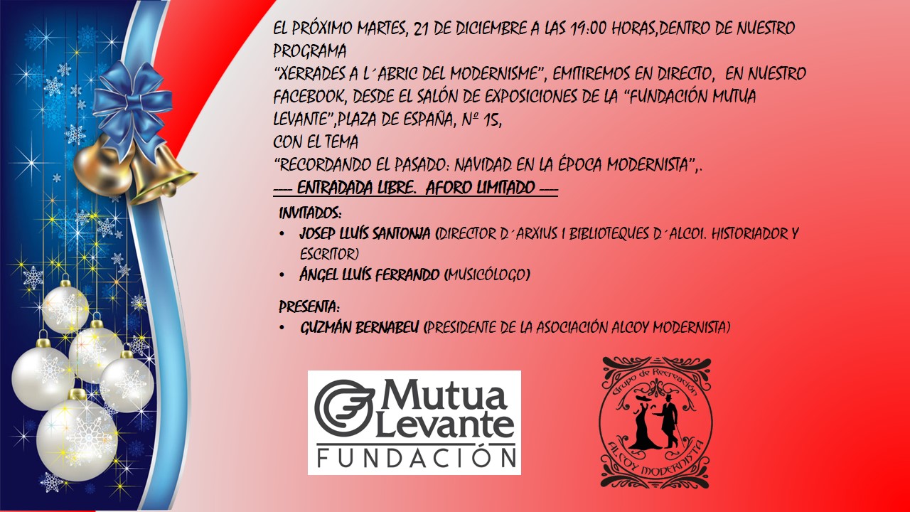 Esta vesprada 21 de desembre a les 19h, el Grup de Recreació Alcoi Modernista ofereix dins del cicle ‘Xerrades a l’Abric del Modernisme una tertúlia titulada ‘Recordant el Nadal a l’època modernista’.