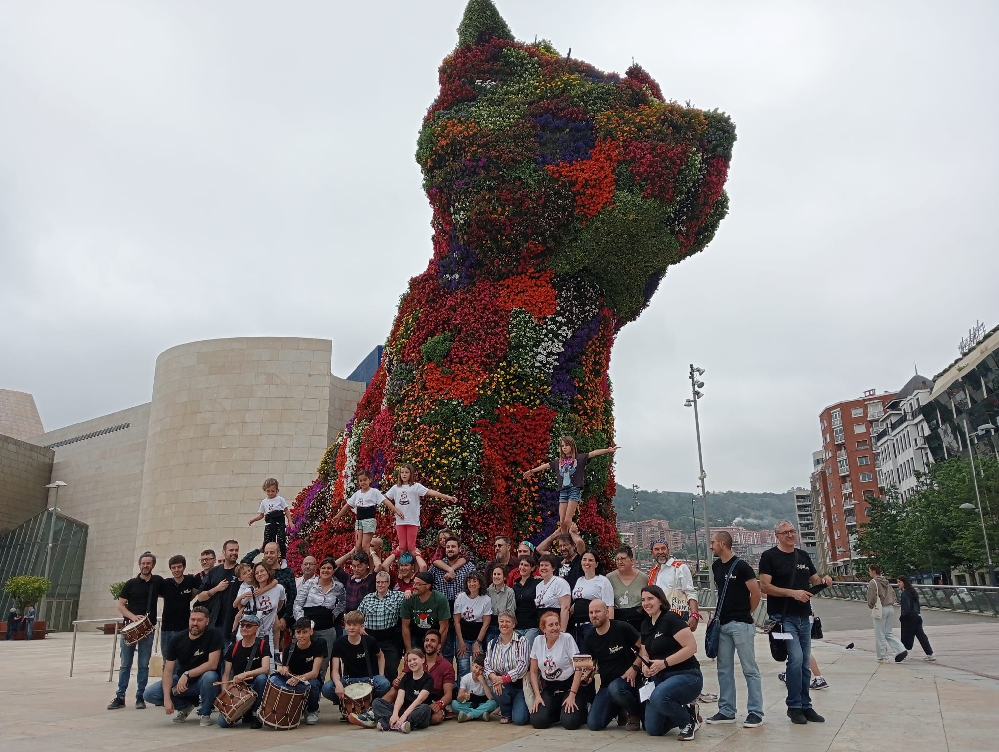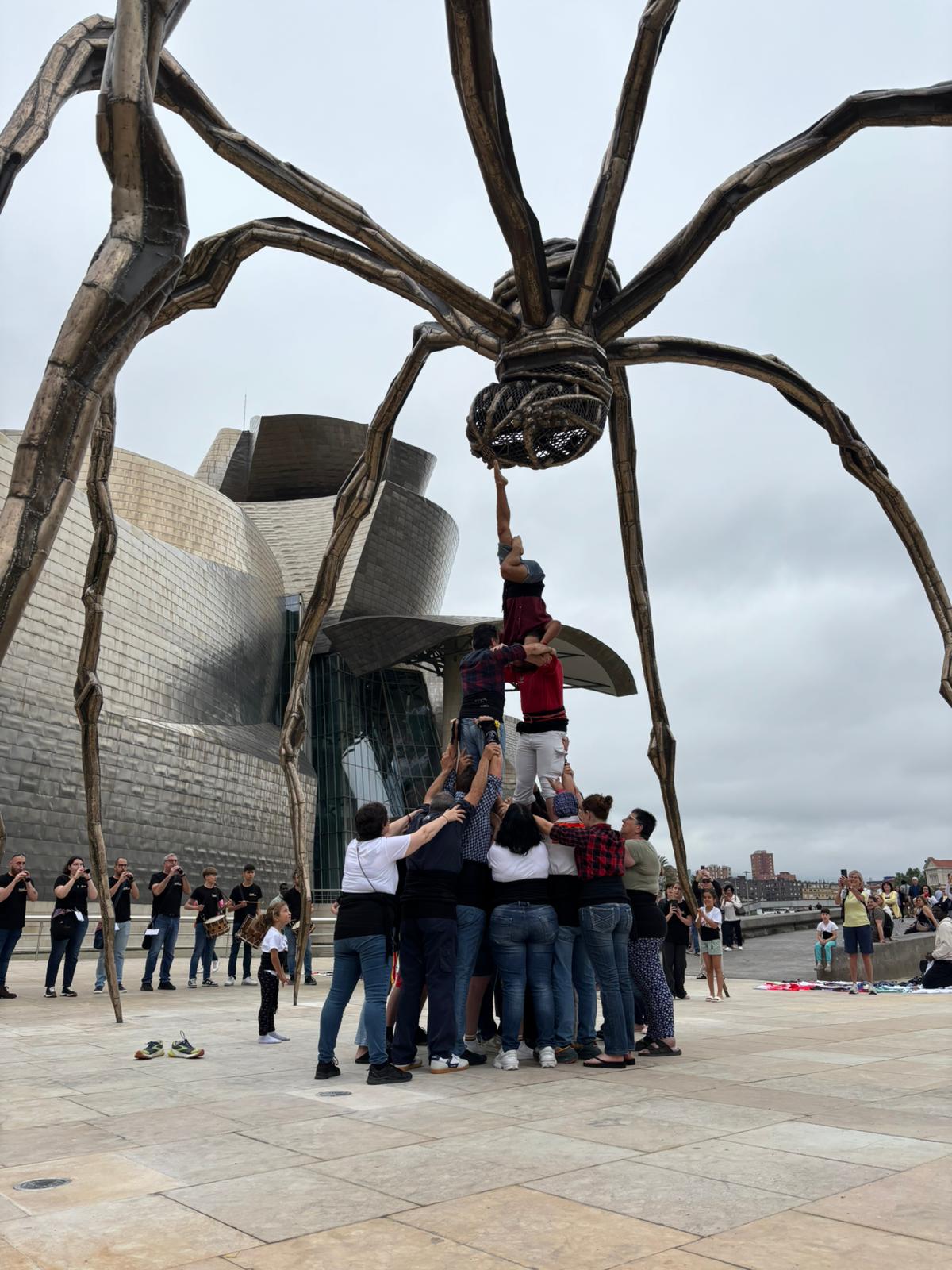 Tal com ens explica Ximo Sanç i Silvestre, membre de la Muixeranga Penyeta Blanca, "divendres de vesprada vam fer el viatge en autobús, vam arribar a dormir a una escola del barri ben tard, sobre la una. Dissabte de matí vam anar caminant fins al museu Guggenheim, on els locals i turistes van poder vore dos figures amb eixe fons tan representatiu de la ciutat de Bilbao".