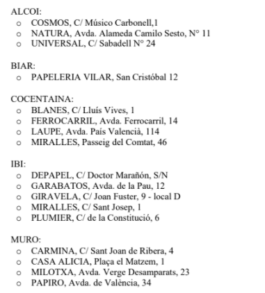 La presentació a Cocentaina ha estat organitzada conjuntament la Garbera Cultural El Guaret i la Regidoria de Cultura i que va amenitzar la Colla de Dolçaines i Tabals Mal Passet. Aquests són els comerços on es pot adquirir el llibre: