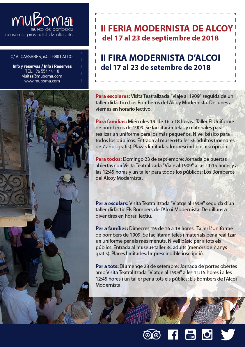 Per això, des de El Museu Provincial de Bombers (MuBoma) es volen unir a aquest important esdeveniment amb una gran diversitat d'activitats. Cal recordar que l'edifici del MuBoma va ser un dels protagonistes principals de l'Alcoi industrial.