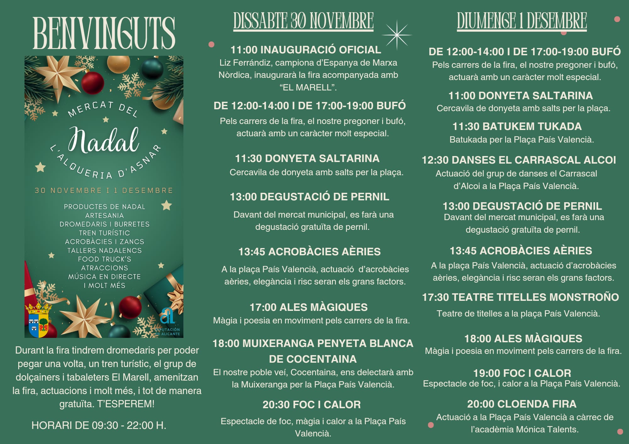L’Alqueria d’Asnar prepara la segona edició de la seua Fireta de Nadal que se celebrarà aquest 30 de novembre i 1 de desembre. L’epicentre serà la Plaça del País Valencià i hi haurà moltes activitats.