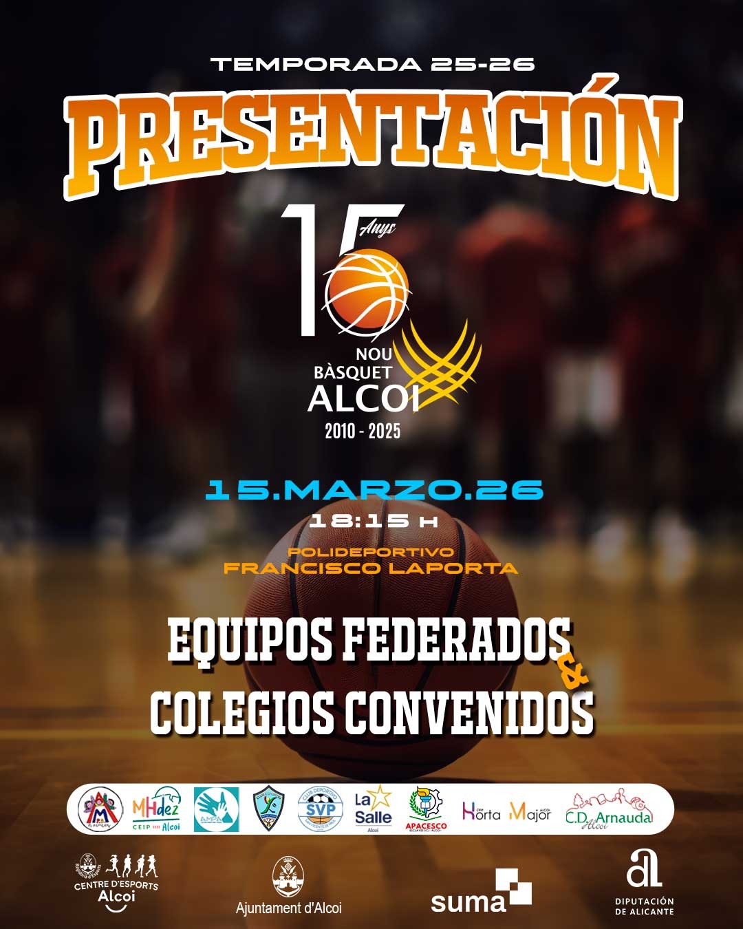 La jornada servirà per a donar visibilitat a tots els equips federats del club, així com als conjunts vinculats als col·legis conveniats. A més, l’acte tindrà un significat especial perquè el club celebra el seu 15é aniversari. Durant la presentació, els diferents equips desfilaran davant del públic en la festa del bàsquet alcoià que posarà en valor el treball esportiu i educatiu que el club desenvolupa amb centenars de joves jugadors i jugadores.