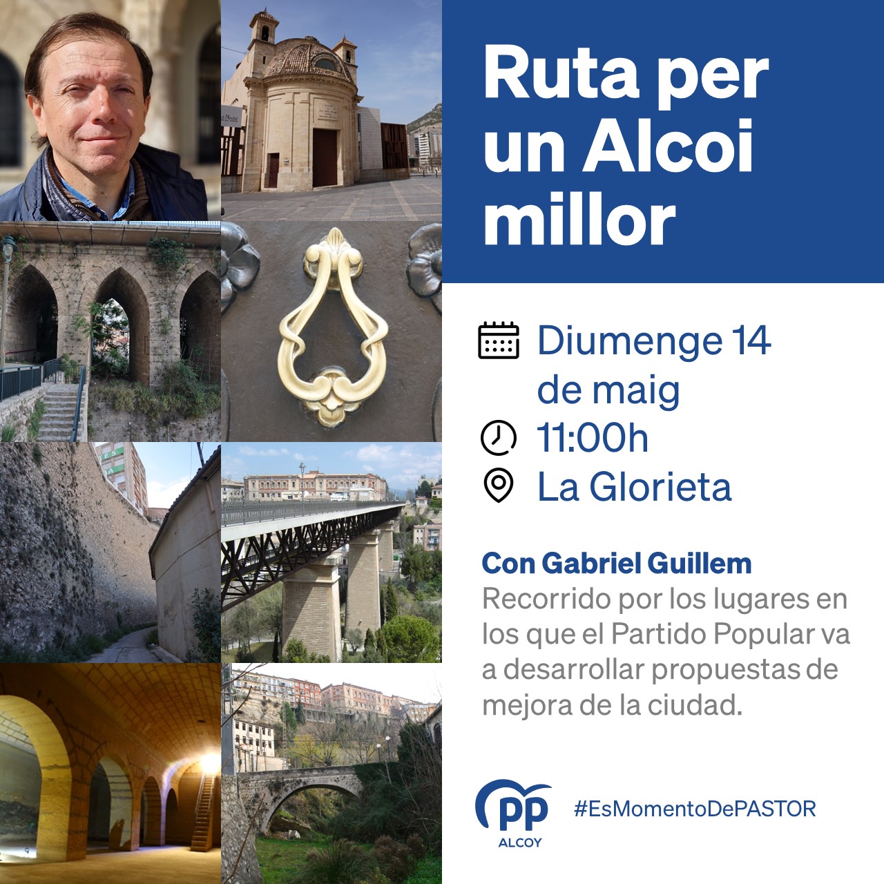 La ruta estarà guiada per l'historiador Gabriel Guillem, número 2 dels populars, qui diu que faran "una ruta diferent, on no parlarem del passat, sinó d'un Alcoi amb futur, un Alcoi millor".