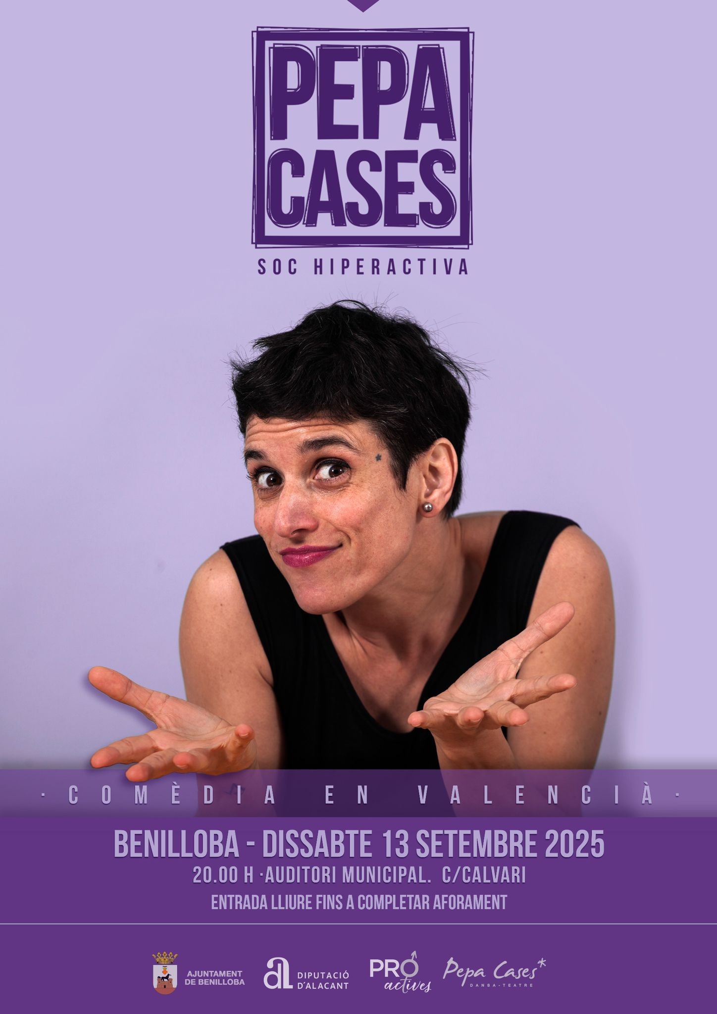 L’activitat central és a representació de l’espectacle “Soc Hiperactiva” de Pepa Cases, que tindrà lloc el dissabte 13 de setembre a les 20 h a l’Auditori Municipal. Es tracta d’un espectacle combina humor i reflexió amb una mirada crítica sobre els rols i estereotips de gènere. L’entrada serà lliure fins a completar l’aforament.