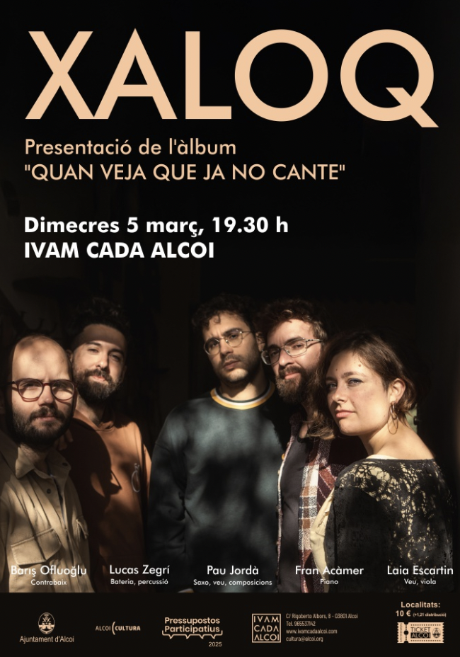 Doncs bé, el dimecres 5 de març a les 19:30 a l'IVAM CADA, Xaloq presenta el seu àlbum de debut, "Quan veja que ja no cante", el qual té com a pilar central la música d’arrel valenciana des de la mirada del jazz i la improvisació lliure.