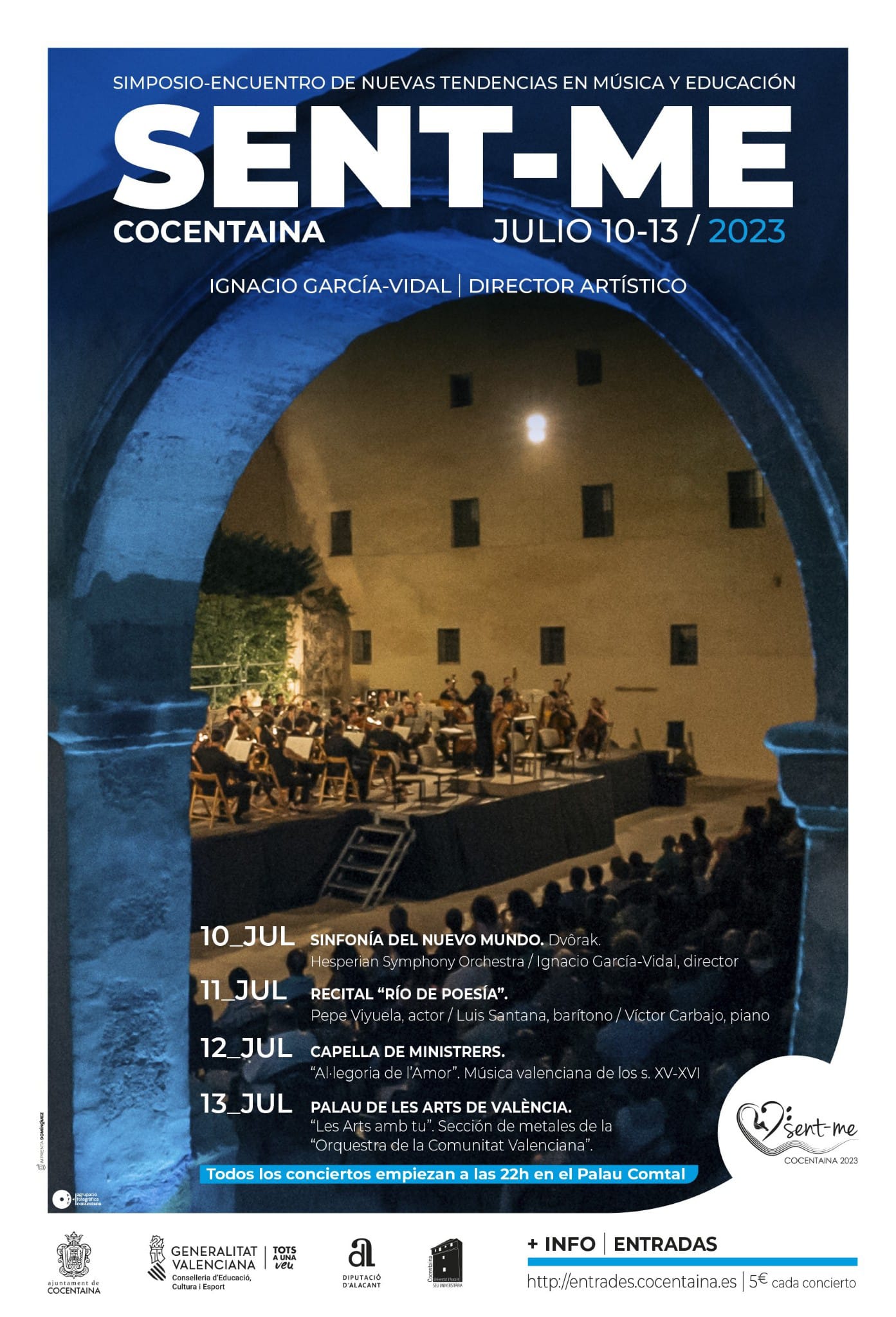 L’Hesperian Symphony Orchestra, dirigida pel mestre contestà Ignacio García-Vidal, inaugurarà el SENT-ME el dia 10 a les 22 h al Palau Comtal. Aquesta orquestra està avalada per més de 100 actuacions en destacats festivals de música clàssica arreu del territori nacional. El Palau acollirà la interpretació d’una de les simfonies més conegudes i belles de la Història de la Música: la Simfonia número 9 «del Nou Món» del compositor txec Antonín L. Dvo?ák.