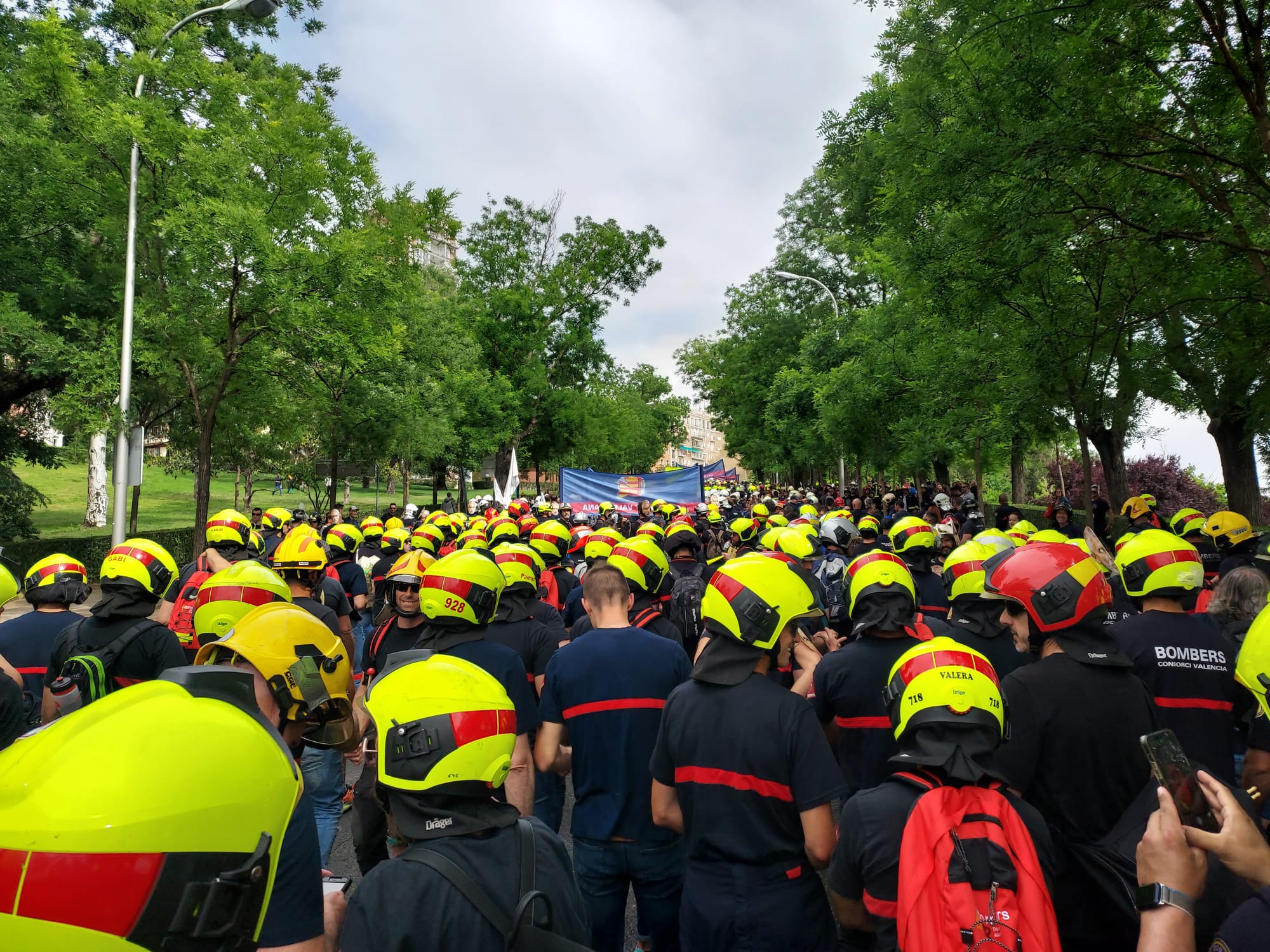 Al voltant de 50 bombers de La Muntanya es van manifestar el passat dimarts 16 de maig en Madrid per a protestar contra el bloqueu polític d’una llei Marc.