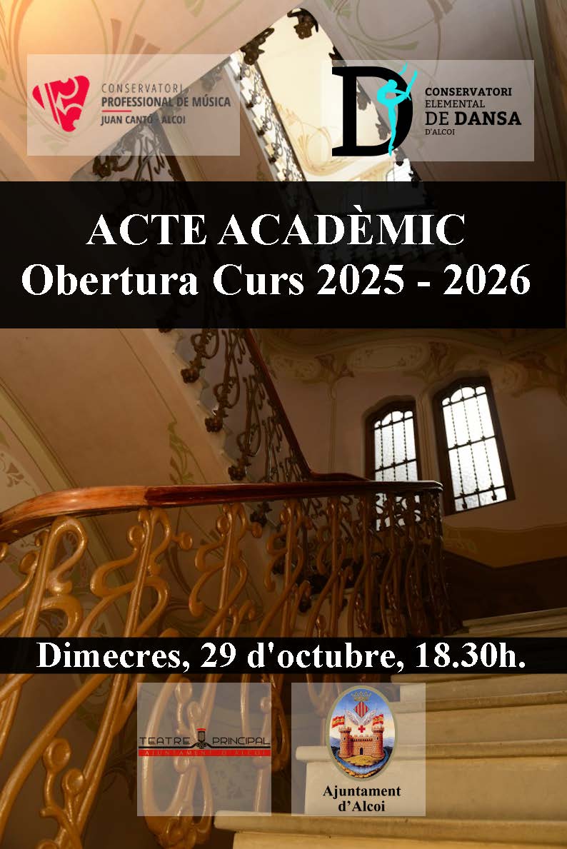 L’acte oficial és aquesta vesprada a les 18:30h al Teatre Principal i constarà de dues parts: Una primera a càrrec de l’alumnat de flauta travessera del Conservatori Joan Cantó, dirigit per Marián Recuerda, i una segona part amb la representació de dotze coreografies per part de l’alumnat del Conservatori de Dansa, que inclourà estudiants tant de les ensenyances elementals com dels cursos d’ampliació d’estudis.
