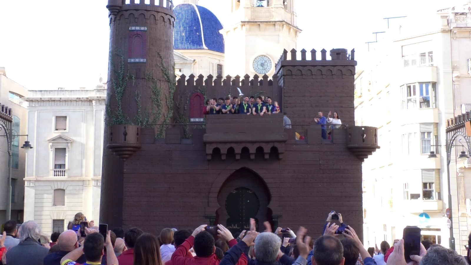 Després dels discursos, ha arribat el moment de les fotos de grup i la celebració. Tots els assistents s'han traslladat a la Plaça d'Espanya i els jugadors, com vertaders "ambaixadors" de l'esport alcoià, han pujat les escales del Castell de Moros i Cristians i, des de la balconada, han alçat el trofeu amb orgull entre els crits i els aplaudiments de l'afició. Enhorabona, xics!