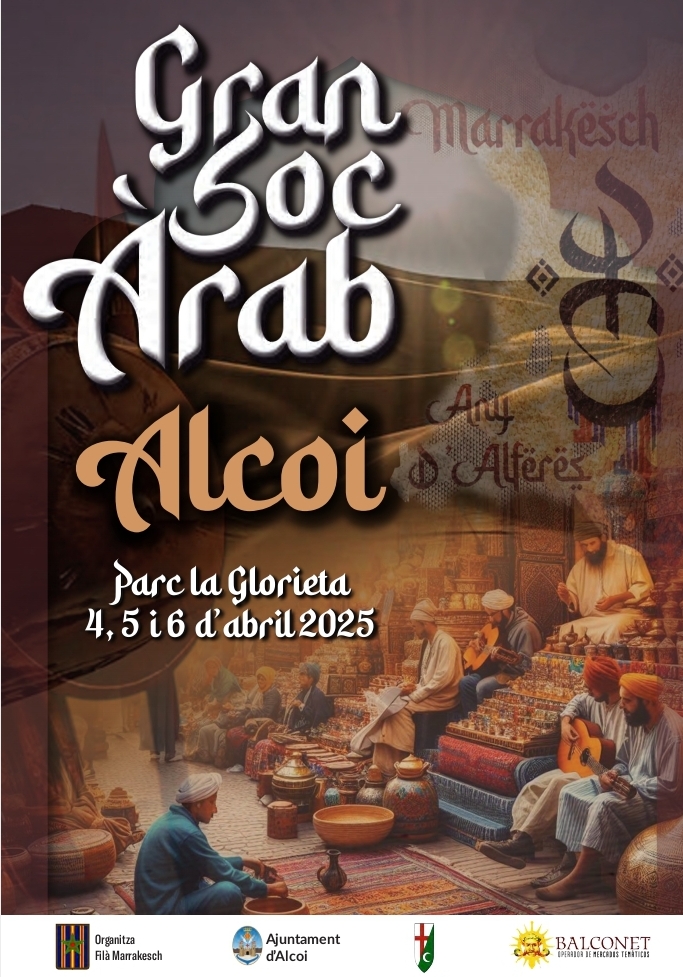 La Filà Marrakesch ha organitzat per al cap de setmana del 4 al 6 d'abril un soc àrab a la Glorieta. "Submergeix-te en un espai ple d'història, colors, aromes i sons vibrants, on l'essència del món àrab cobra vida en cada racó", diuen des de la Filà.