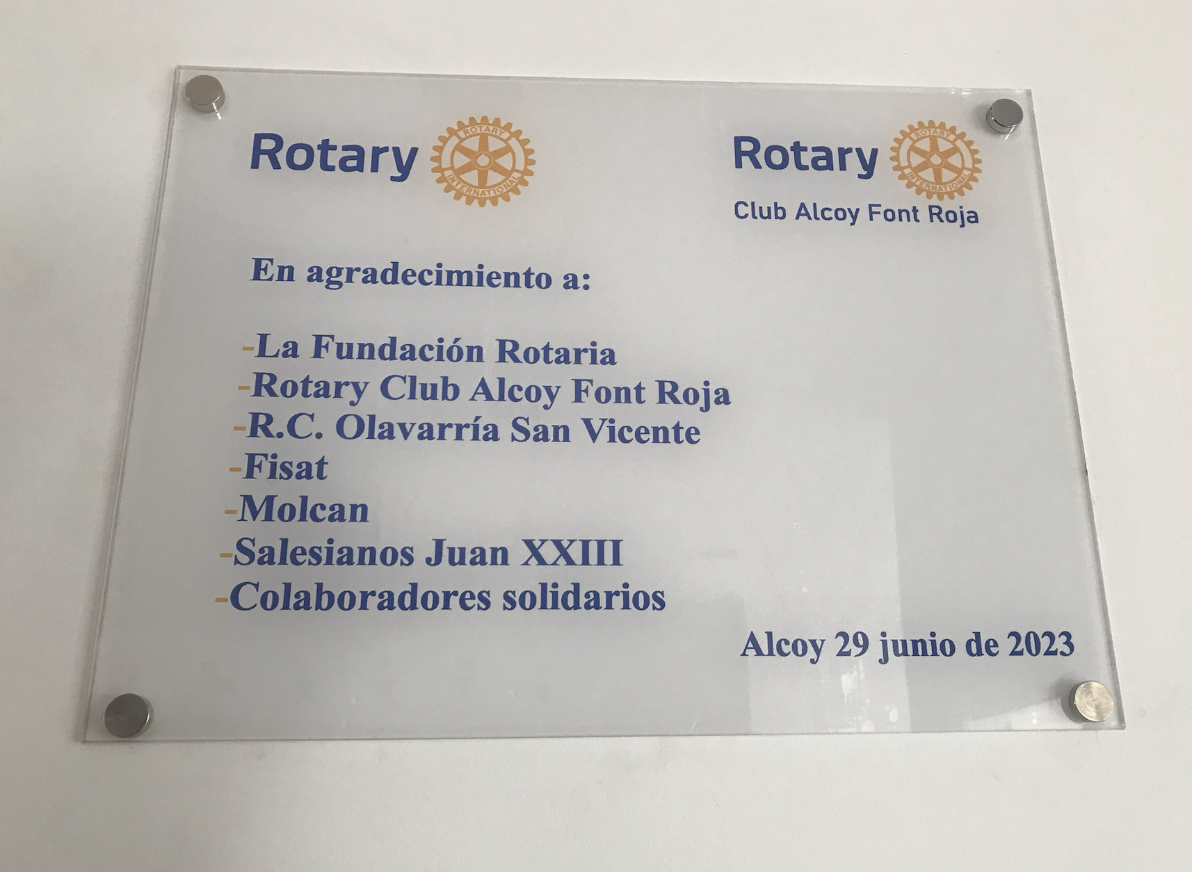 Per la seua part, Rafael Doménech, president del Rotary Club Alcoi Font Roja, ha volgut agrair la presència d’Ana Martín, cap de la Fundació Rotary, a la qual es deu bona part del finançament que ha fet possible aquesta millora de les instal·lacions.