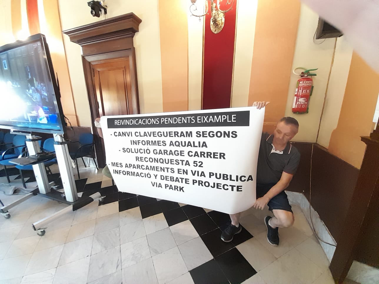 El plenari municipal de setembre ha servit per a que l’Associació de Veïns de l’Eixample exhibira una pancarta amb algunes reivindicacions al barri. Els motius són diversos, com la “falta d’informació” sobre el projecte de la Via Parc i la “supressió de places d’estacionament” per a vehicles. També denuncien un problema puntual amb la pluja al Carrer Reconquesta.