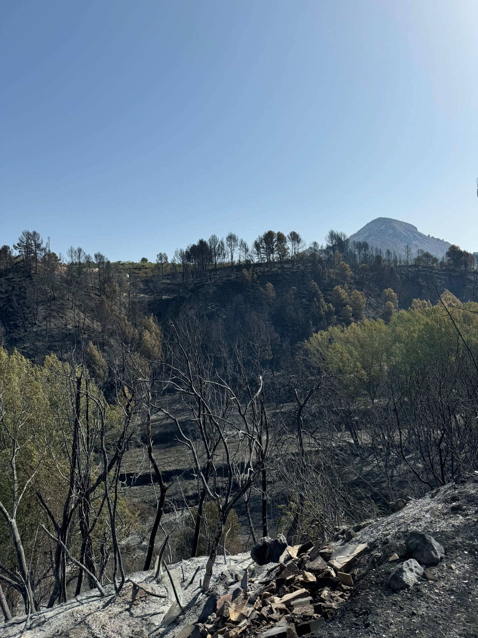 Durant aquest matí de dijous, les 800 persones de Penàguila desallotjades ara fa dos dies, han pogut tornar de manera progresiva a les seues cases. Pel camí han trobat l'espai natural del voltant totalment arrasat per les flames.