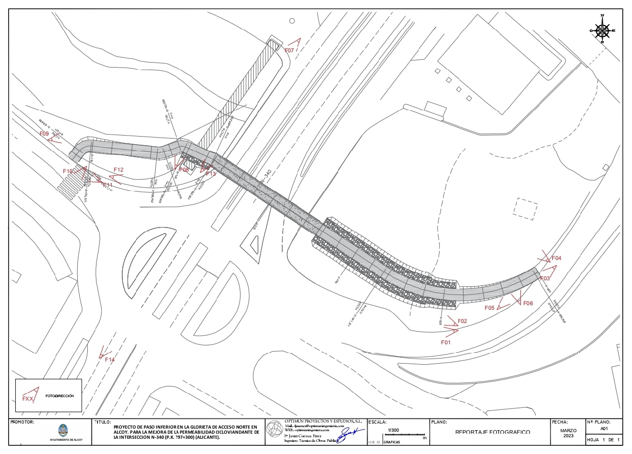 L'Ajuntament d'Alcoi ha tret a licitació les obres per a construir un pas inferior per a vianants i bicicletes en l'accés nord a la ciutat. El nou itinerari s'iniciarà en la carretera de la partida dels Algars, en la pujada a la rotonda; continua fins al barranc on es construirà el pas amb marcs de formigó, i eixirà de nou a la superfície en l'avinguda Tirant lo Blanc, després de la passarel·la per a vianants que es va construir fa uns anys. Es pot vore en estes dos imatges extretes de la memòria del projecte.