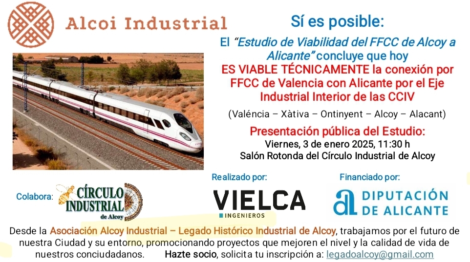 Durant vora 40 anys és un tema que s'ha donat per perdut però des d'Alcoi Industrial creuen que no sols és viable sinó necessari. Tenen un estudi que així ho confirma, i que presentaran el pròxim divendres 3 de gener en un acte al Círculo Industrial.