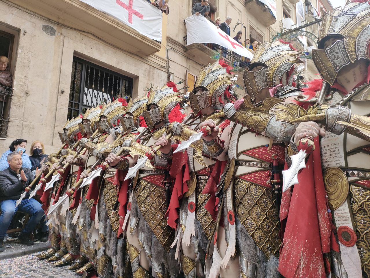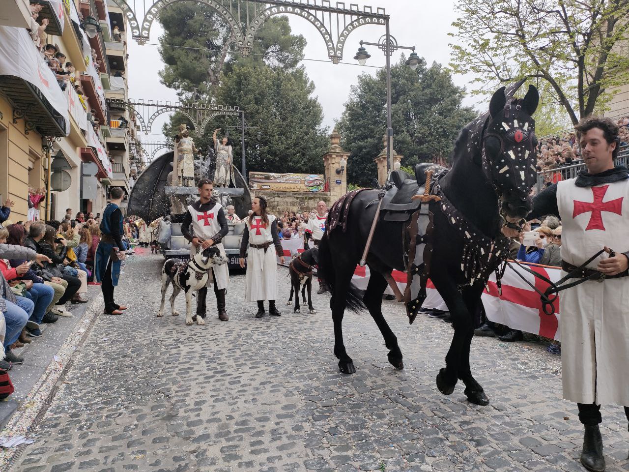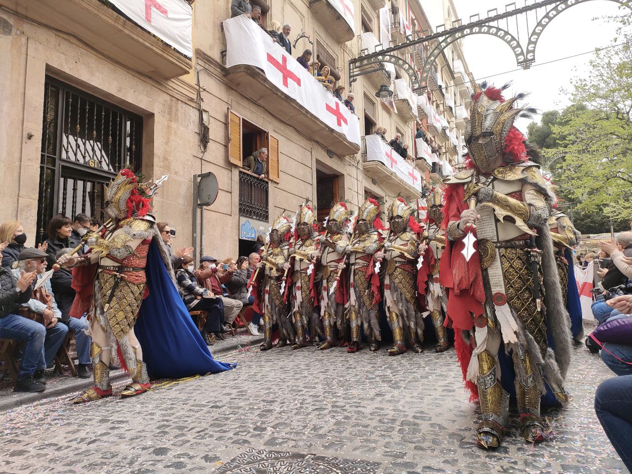 Joaquin Brotons, alferes 2022, ha tancat amb els Creuats l'entrada cristiana. Amb un disseny de Jose Moiña, tant per als vestits del capità, dames i rodella com per al boato. I acompanyat per la Societat Nova d'Alcoi que interpreta Ioam de José Rafael Pascual Vilaplana.