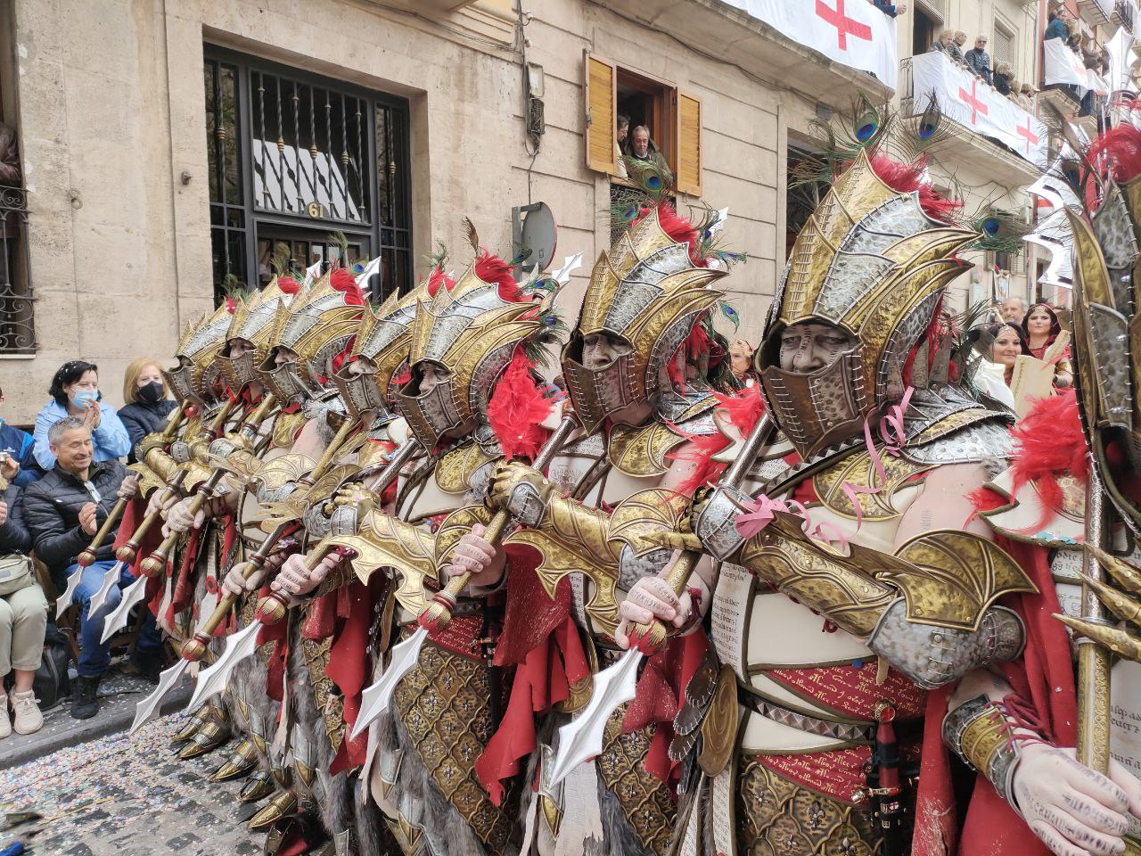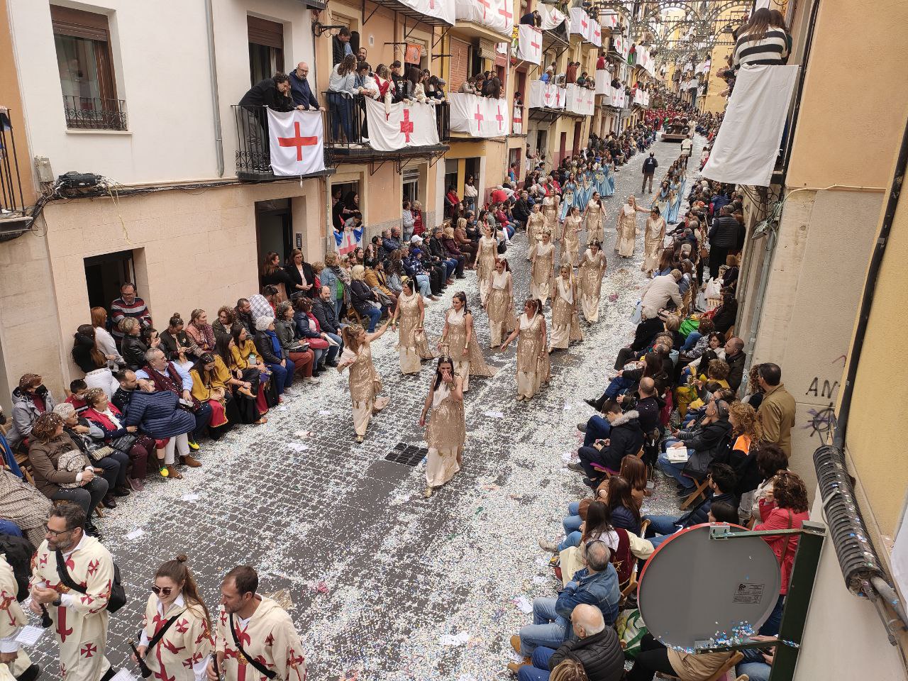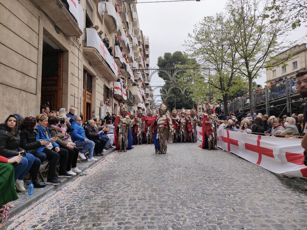 Joaquin Brotons, alferes 2022, ha tancat amb els Creuats l'entrada cristiana. Amb un disseny de Jose Moiña, tant per als vestits del capità, dames i rodella com per al boato. I acompanyat per la Societat Nova d'Alcoi que interpreta Ioam de José Rafael Pascual Vilaplana.