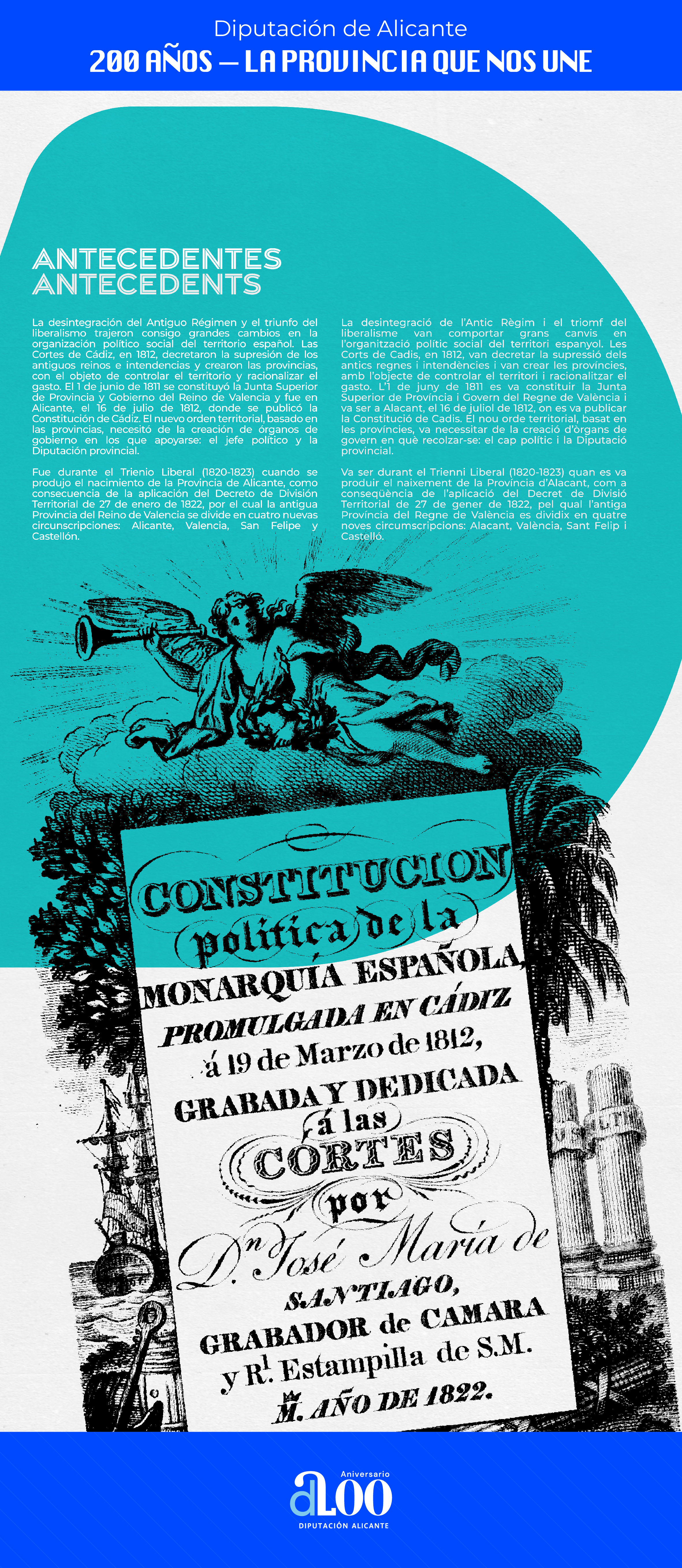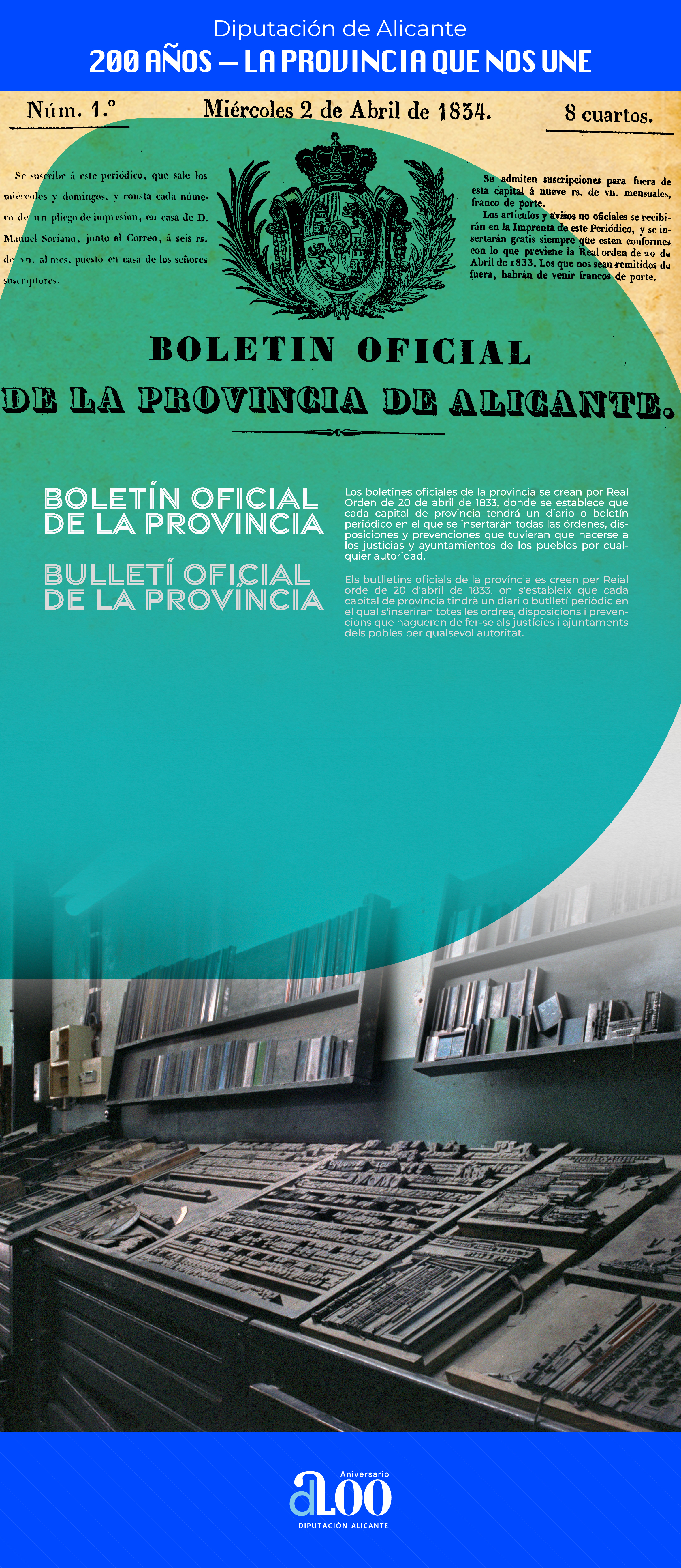 Aquest any, la Diputació d’Alacant celebra el seu 200 aniversari i per aquest motiu ha organitzat diverses activitats que fan un repàs al recorregut històric de la institució. Una d'aquestes commemoracions és l'exposició itinerant “200 anys. La província que ens uneix” que repassa a través de les imatges, la història i els principals esdeveniments de la corporació al llarg d'aquests dos segles. Aquesta mostra temporal va dirigida a tots els públics i edats, així com a tots els alacantins i turistes que acudeixen cada any a visitar els diferents municipis de les comarques alacantines.