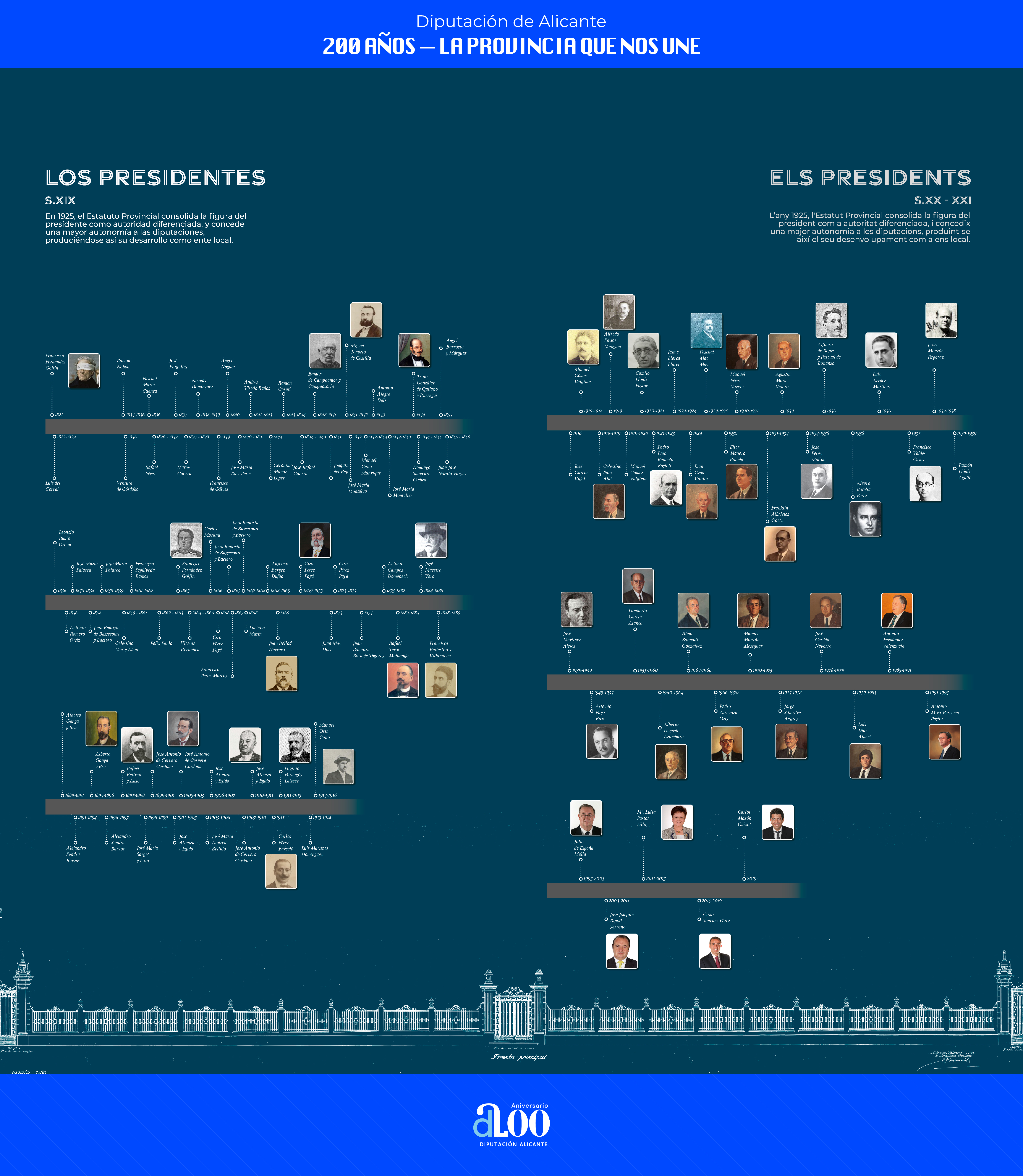 Les primeres imatges de l'exposició, traslladen al visitant als inicis de la Diputació d'Alacant a través d'un recorregut cronològic de tots els presidents de la institució des del segle XIX fins a l'actualitat. A més, també es mostra com i quan es crea la província.