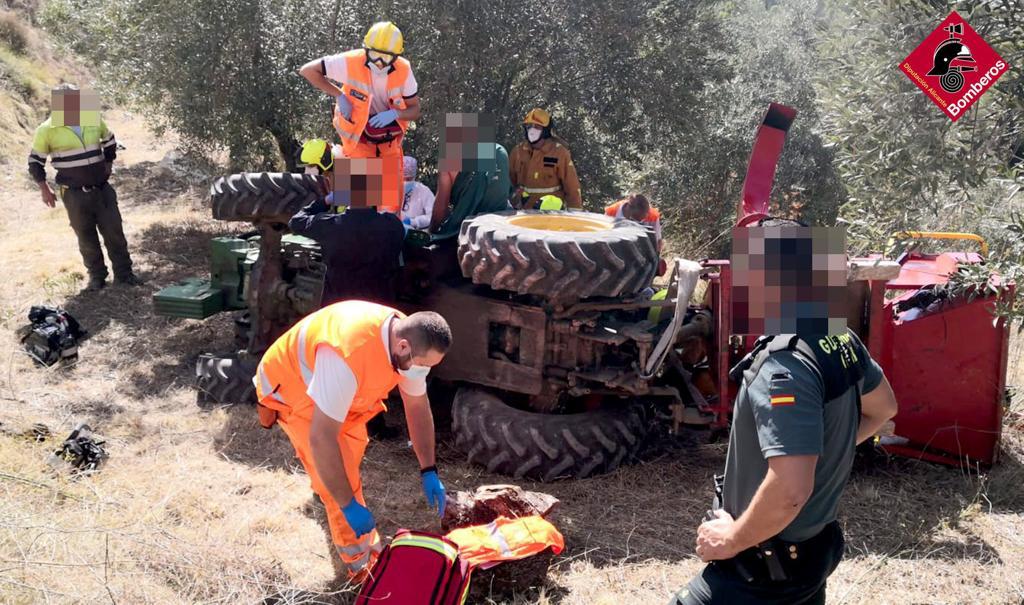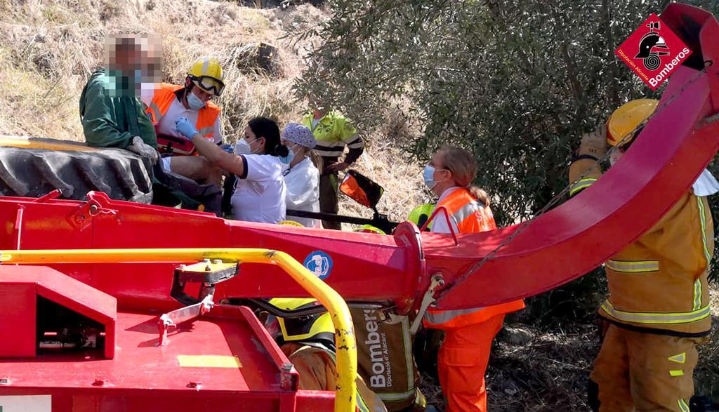 Els serveis sanitaris i els Bombers han acudit a Planes a atendre un home que tenia la cama atrapada en el tractor, que havia bolcat. Després de traure'l i estabilitzar-lo, un helicòpter medicalitzat l'ha traslladat a l'Hospital Verge dels Lliris.