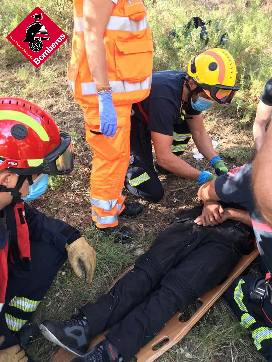 Al voltant de les 9 del matí, el servei d'emergències ha rebut l'avís d'un accident en la carretera CV-803 entre Onil i Banyeres. Efectius dels bombers d'Alacant i una ambulància s'han personat en el lloc dels fets i han trobat un home ferit que havia caigut al bosc des d'una altura de 3 metres,