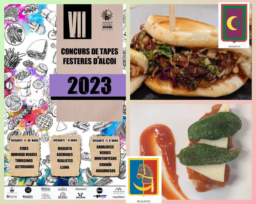 Este 1 d'abril se celebra la segona sessió del Concurs de Tapes Festeres, que organitza l'associació cultural Samarita. De nou, quatre filaes han preparat una tapeta per a compartir amb amics, i amb la confiança de ser la millor tapa del concurs. Així, podrem gaudir de les 'gambes llaneres' a la Filà Llana, 'pilota de putxero' als Gusmans, 'pan bao amb carn metxada' a la Magenta, i 'tostà de mogote i tomaca al xef' en els Realistes.