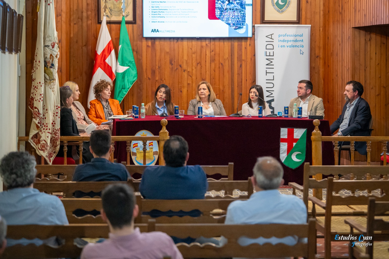 Aramultimèdia i la Generalitat celebren al Casal unes jornades sobre l'impacte de la indústria de la Festa. En la primera taula redona es va produir un interessant debat sobre les implicacions que té ser una Festa d'Interés Turístic Internacional i l'allau de turistes que es reben cada any. Tinguérem representants dels dos municipis que ostenten este reconeixement, Alcoi i la Vila Joiosa, així com d'Ontinyent que està ara intentant aconseguir-ho, i les percepcions des de cada municipi eren diferents. Però tots estaven d'acord que cal desestacionalitzar les Festes i atraure turisme més enllà del dia d'Entrada en els diferents municipis. Per cert, que el director general de Turisme José Manuel Camarero, en la inauguració, va reiterar el compromís de la Generalitat amb les diferents festes valencianes i va oferir expressament el suport de la institució a la regidora d'Ontinyent Àngels Muñoz, i el president de la Societat de Festes Vicent Pla, per aconseguir la distinció d'Interés Internacional.