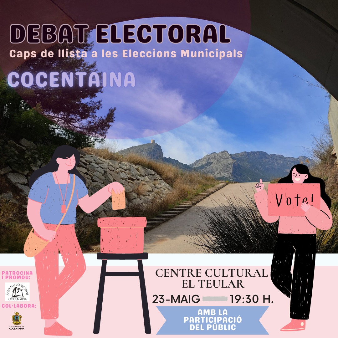El poble de Cocentaina té el dimarts 23 de maig a les 19:30 hores al Centre Cultural El Teular una cita per conéixer de prop els candidats a l'alcaldia i els seus programes electorals. Tot i que, de les cinc formacions polítiques que concorren a les eleccions municipals, al debat tan sols en participaran 4: PSOE, Compromís, PP i Esquerra Unida. Vox, segons Mauro Agulló, president de l’Associació de Veïns de Cocentaina, “va agrair que els convidàrem, però ens han comunicat que no participaran”.