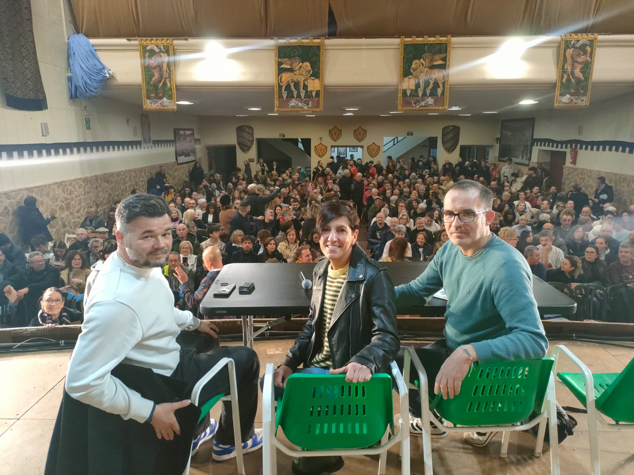 Més de 300 persones han omplit la sala, i una hora abans de la cita ja hi havia cua en la porta. I no tots d’Esquerra com es podria esperar: entre els assistents hem pogut vore a l’alcalde d’Onil (del PP) o el de Muro (de Compromís). Quan li ho hem fet notar a Rufián, s’ha mostrat satisfet, “transversalitat”, ha dit.