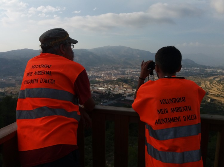 Als voltants d'Alcoi, un grup de voluntaris, coordinat pel departament de Medi Abient de l'Ajuntament, van alternant-se per a vigilar la muntanya durant els mesos de més riscs d'incendis. Són tres grups de voluntaris, de dues persones cada un. Dos del llocs de vigilància són fixes, un a la torreta de Sant Antoni i l'altre en la Buitrera. El tercer lloc de vigilància és a la via verda, en el que els seus voluntaris van passejant amb la bicicleta i van vigilant, entre altres coses, que la gent no deixe brossa per la zona.