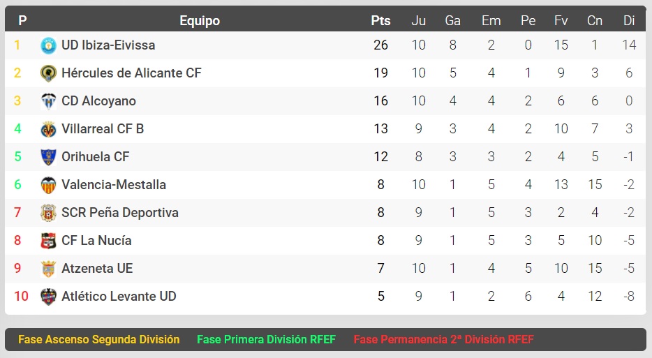 El Deportivo continua tercer en llocs d'ascens a Segona A, però ni Vila-real ni Oriola han jugat aquesta jornada encara. Els groguets juguen dimecres i els del Baix Segura estan confinats.
