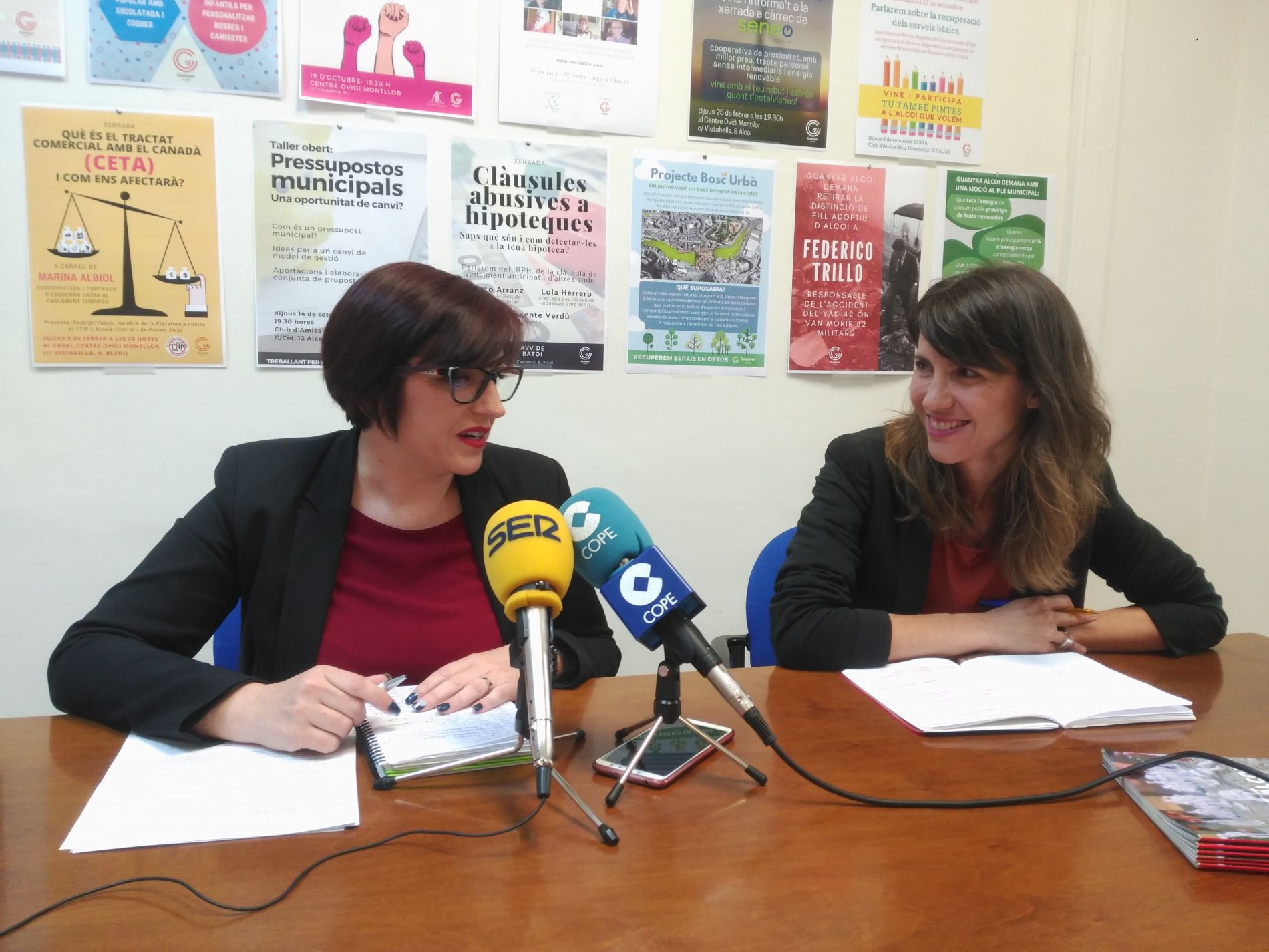 L'actual portaveu del grup municipal de Guanyar Alcoi i candidata a les Corts per Unides Podem-Esquerra Unida, Estefania Blanes, ha comparegut en companyia d'Obiol per a escenificar l'entesa entre totes dues formacions. Blanes ha considerat que les propostes a nivell a municipal han d'anar en consonància amb l'administració autonòmica, per això ha defensat una "col·laboració i una comunicació continuada" entre la plataforma municipal alcoiana i la coalició d'esquerres en les Corts.