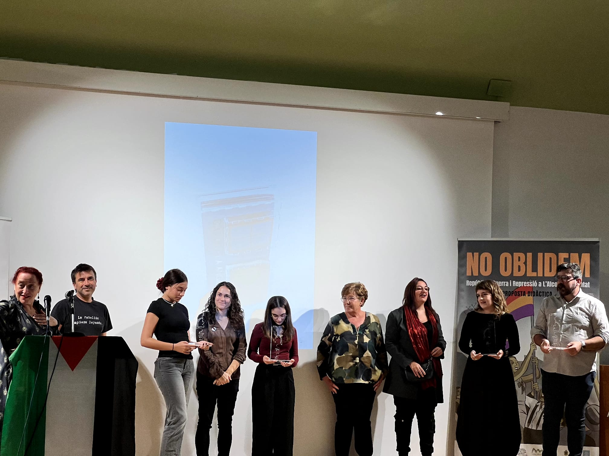 S'han lliurat quatre premis, dos per a assajos i altres dos per a obres artístiques; i els premiats són les estudiants Aroa Jiménez i Minerva Peidro; l'arqueòleg Pedro Corredor; i l'artista Alba Ramiro. És la primera edició del concurs de memòria històrica 'No oblidem'