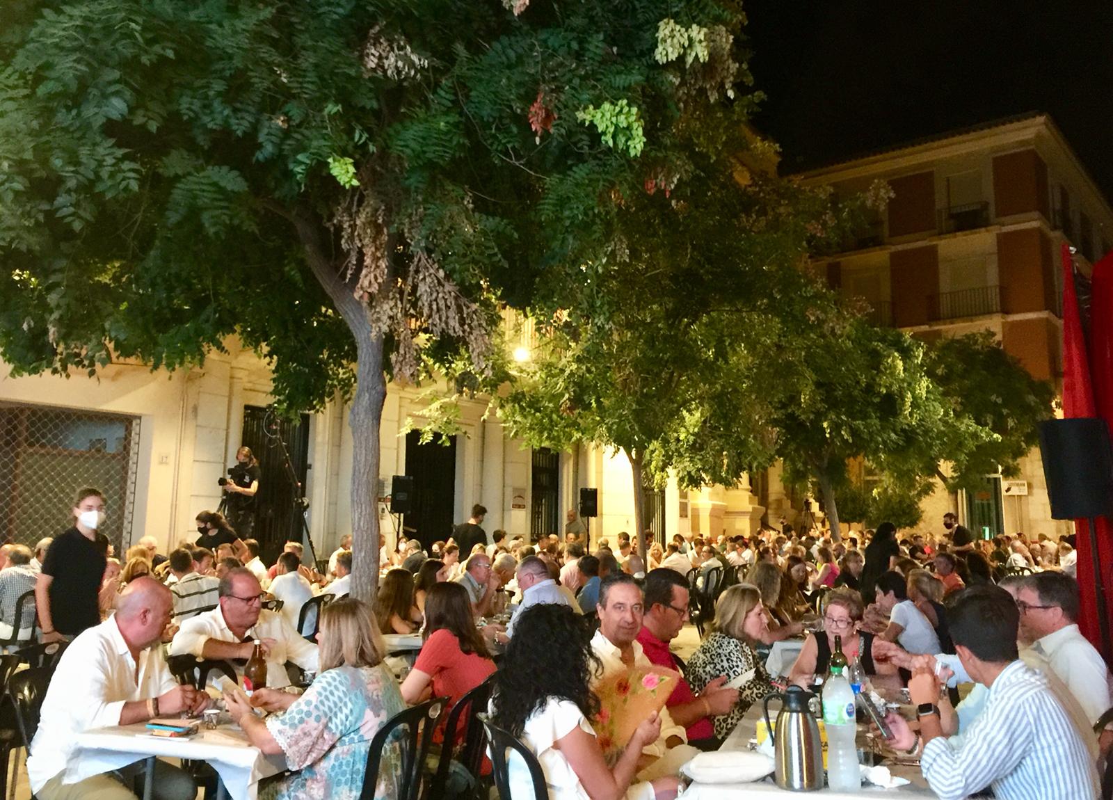 De vesprada, a les 20.00h es va realitzar la missa en l’Ermita de Santa Ana i després va començar el sopar en homenatge als festers i festeres que han faltat des d’agost de 2019. Per motius de seguretat no era convenient congregar al saló de la societat de festers als prop dels 270 festers que van acudir a l’acte i per tant, el lloc elegit va ser la placeta Latonda, on es van realitzar estrictes mesures de seguretat i el control de comensals per taules.