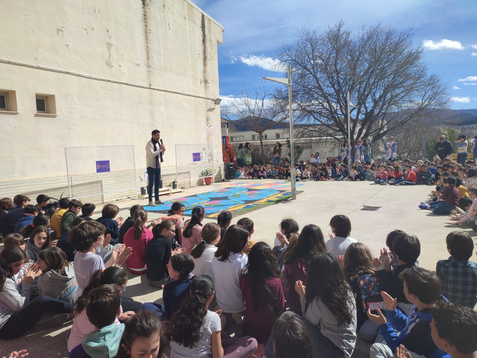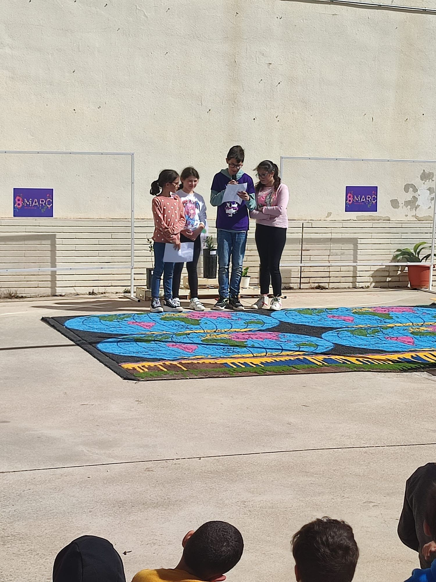L'alumnat ha treballat amb eixes imatges els darrers dies, pintant-les. I els alumnes de cinqué curs han preparat un manifest que han llegit en l'acte que s'ha celebrat al col·legi este 8 de març.