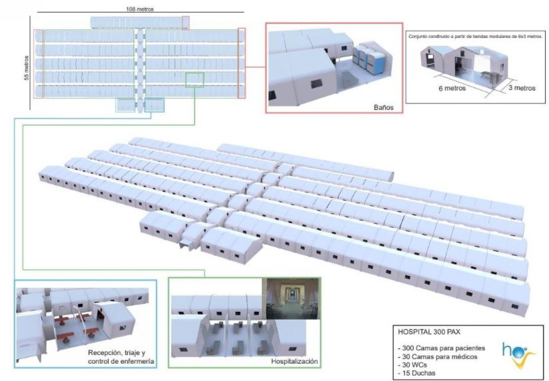Es tracta, a més, d'hospitals de campanya dissenyats per al seu funcionament durant grans períodes de temps, formats per contenidors desplegables connectats entre si mitjançant túnels.