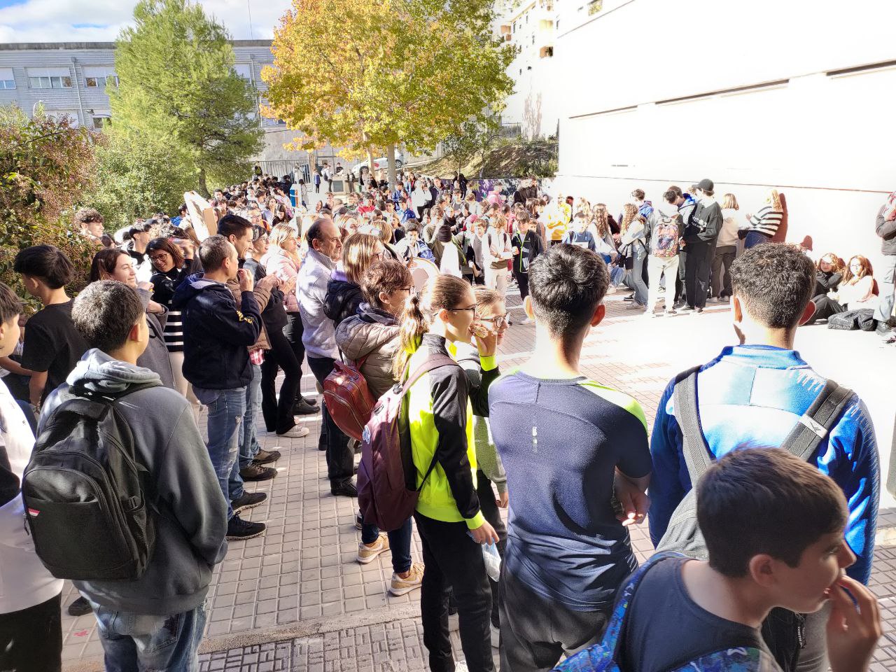 Este 9 de novembre l'alumnat ha tornat a reunir-se al pati per llegir el manifest i fer soroll, que se'ls escolte, perquè ells ja estan preparats per a una mudança que no arriba. I no es pot fer bé classe quan ho tens quasi tot en caixes.