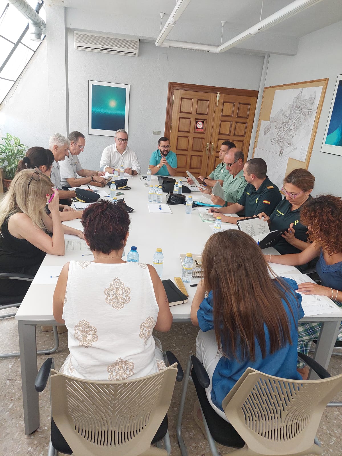 La junta ha contat amb la presència del subdelegat del govern en Alacant, Juan Antonio Nieves Martínez; l'alcalde d'Ibi, Sergio Carrasco Martínez; la vicealcaldessa i regidor de Festes, Aitana Gandia; el cap operatiu de la Unitat Provincial d'Alacant de la Policia Autonòmica, l'inspector Sr. José Antonio Fernández De La Propietària; el cap accidental de la Comandància de la Guàrdia Civil, el tinent coronel Sr. Antonio Darder; el cap accidental de la Companyia a Ibi, el comandant Sr. Antonio Garate; la cap del Paprona d'Alacant, la capità Sra. María Pellicer; el cap accidental del Lloc de la Guàrdia Civil a Ibi, el sergent Sr. Ángel Rocamora; el cap de Seguretat Ciutadana del Cos Nacional de Policia, l'inspector cap Sr. Jesús Sánchez, així com la cap accidental de la Policia Local d'Ibi, Elvira Vidal Sempere. Quant a representants d'Igualtat i VioGen, també ha assistit Eva Montesinos, cap de la Unitat Contra la Violència sobre la Dona d'Alacant i la tinenta d'alcalde de Serveis Socials i Igualtat de l'Ajuntament d'Ibi, Montse Agulló.
