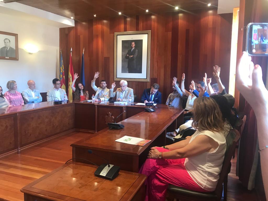 Una vegada constituït el plenari, s’ha passat a la votació de l’alcalde a mà alçada. La candidata de Vox s’ha votat a si mateixa, el PSPV-PSOE, com estava previst al Pacte del Teular, no ha presentat candidatura i, finalment, Jordi Pla, de Compromís, ha sigut investit alcalde amb els vots de la formació valencianista i els socialistes: 10 vots.