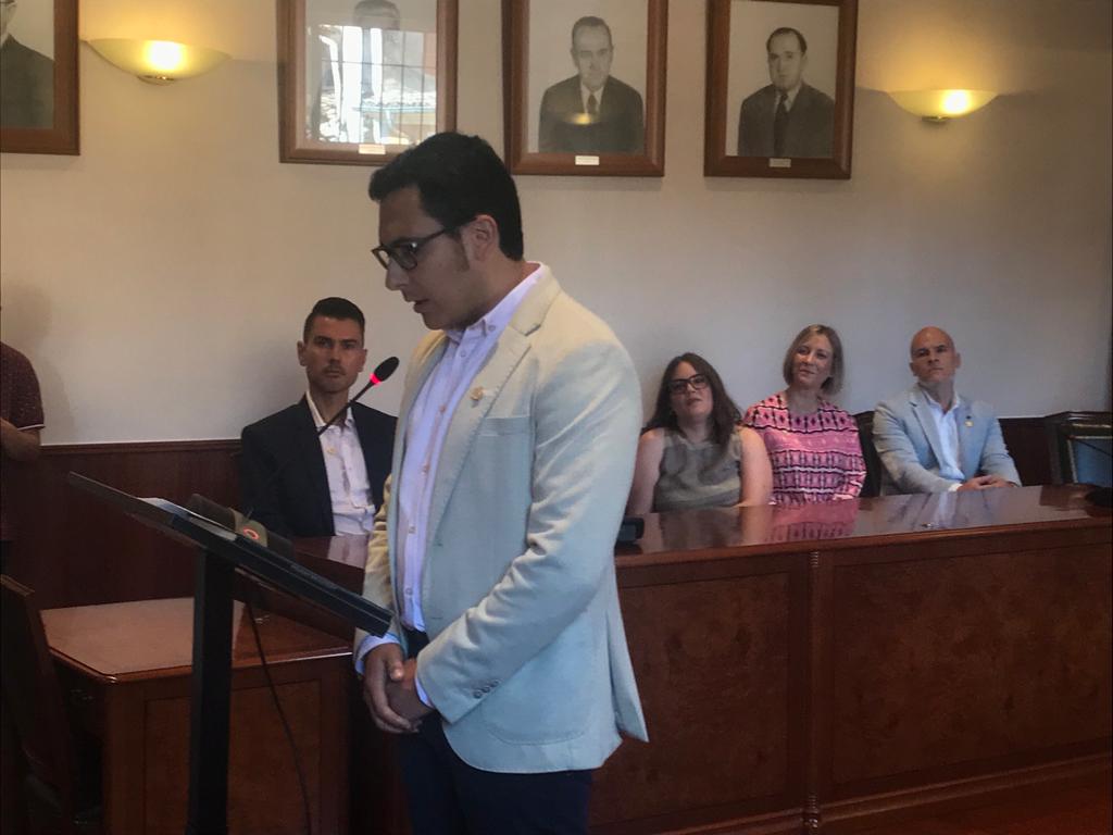 Rubén Muñoz, el número u del PSPV-PSOE, ha volgut recordar i reivindicar en el seu discurs la tasca de l’anterior govern presidit per Mireia Estepa, qui estava present a la sala per a fer entrega de la vara d’alcaldia. A més a més, el candidat socialista ha promés estar al costat de tots els veïns i veïnes i defensar els interessos comuns de Cocentaina amb un govern de coalició progressista de la mà dels seus companys de Compromís.