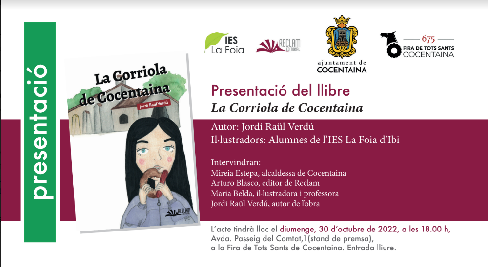 La Fira de Cocentaina serà de nou escenari per ala presentació d’un llibre, en aquesta ocasió un conte infantil de Jordi Raül Verdú Ponts que compta amb il·lustracions de l'alumnat de l'IES La Foia d'Ibi, coordinats per la il·lustradora contestana Maria Belda.