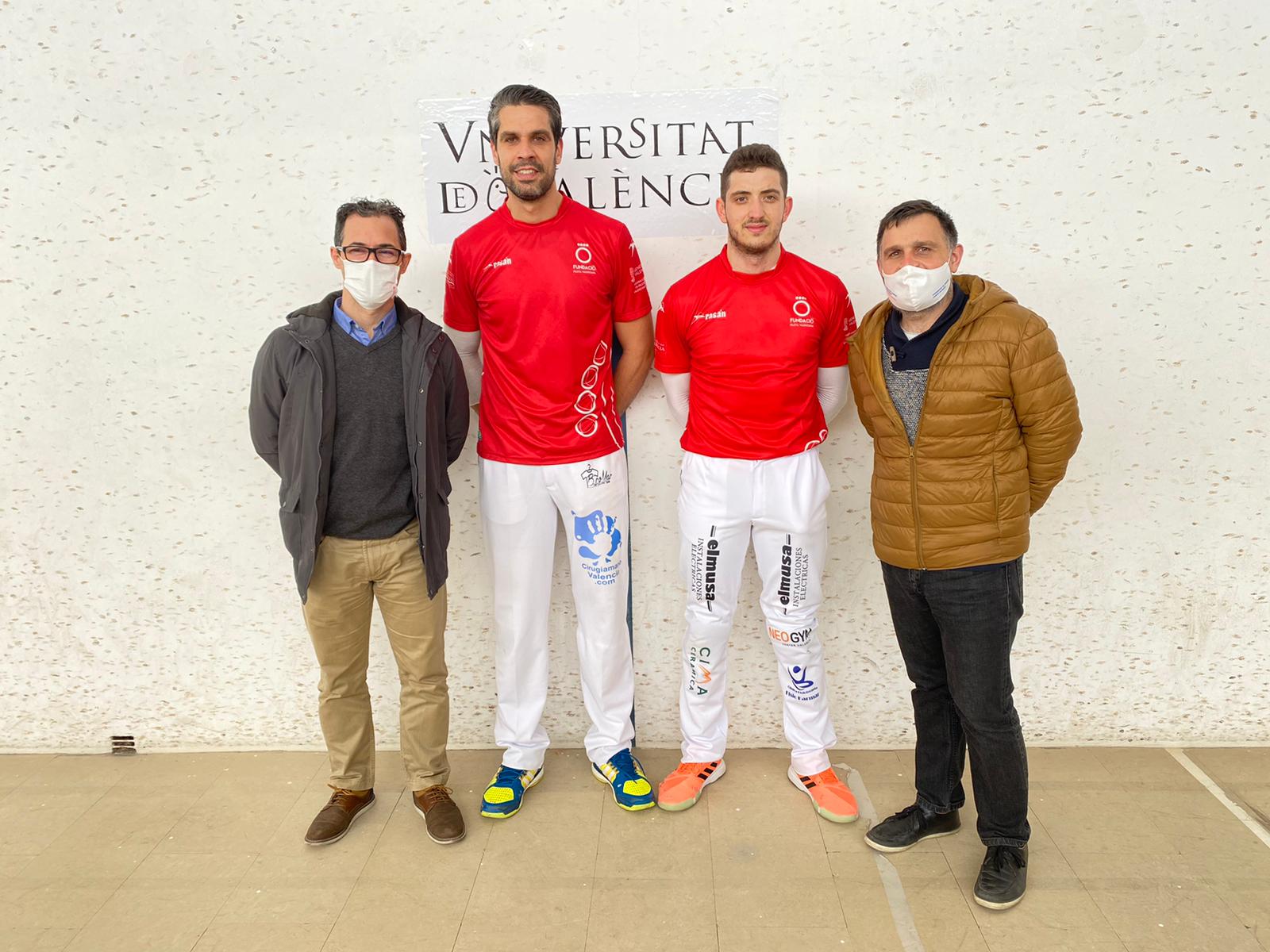 La partida de fi de curs de la Universitat de València-Campus Ontinyent es va disputar amb públic, complint totes les mesures de seguretat i on tots els presents van assaborir una confrontació molt igualada, amb punts molt llargs a causa de tindre les galeries prohibides i haver de fer el joc per dins en les lloses. L'ontinyentí d'adopció Javi va estar un baluard agafant molt de protagonisme amb la pilota i fent-la anar amb molta qualitat. Fins al final no es va decidir el duet guanyador, amb un enfrontament força igualat. De fet, amb 55-50 els blaus van poder empatar a 55. Finalment el joc va caure del costat de José Salvador i Javi acabant una partida que va durar més d'hora i mitja la qual cosa demostra la gran quantitat de punts disputats i l'entrega dels 4 pilotaris.